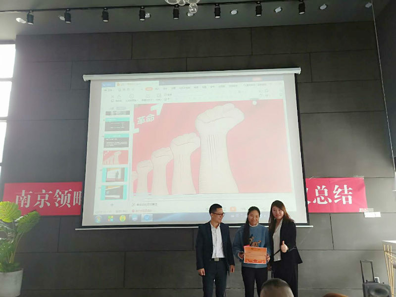此次会议的高潮是对2019年第一季度销售冠军杨瑞进行表彰