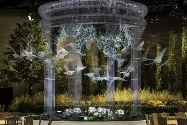 这座被称为“建筑的幽灵”的艺术品,在阿布扎比国家展览中心的皇家婚礼上震惊了在场所有人,设计灵感来源于欧式的古典中庭建筑,却又不局限于古典本身,半透明幽灵般的外观打破了传统的古典主义,让建筑游走在虚与实之间,成群缠绕的飞鸟围着宫殿起舞,为新人送上最美好的祝福。