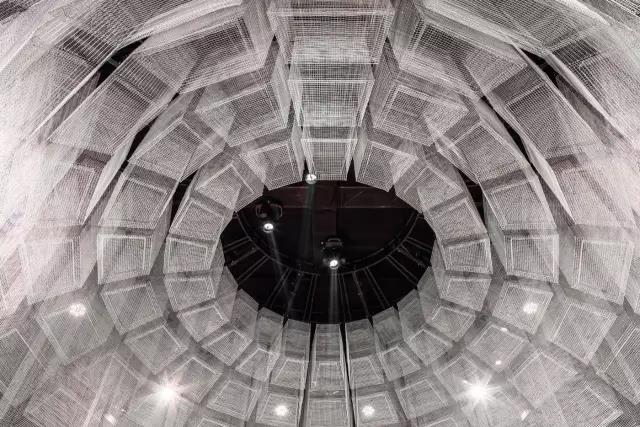 该空间由多面球体形成的棱柱体定义,尺寸逐渐变大并在顶部向外弯曲。