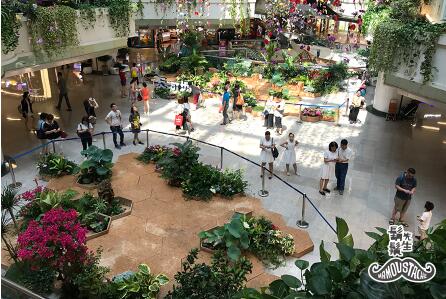 常见的商业美陈多是仿真模型、艺术小品、雕塑、玻璃钢等物品组合而成,然而据南京领略广告有限公司了解有一家购物中心却另辟蹊径,用鲜花绿植完成了一场商业美陈盛宴。