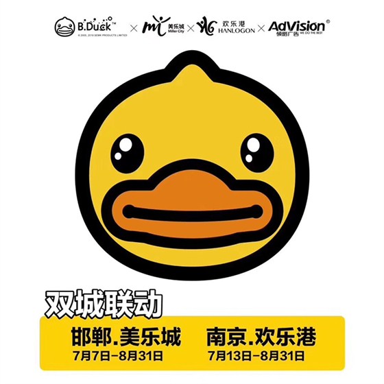 邯郸美乐城·南京欢乐港B·Duck小黄鸭来啦~双城联动,其“乐”无穷,下面跟随南京领略广告一起来吸鸭!
